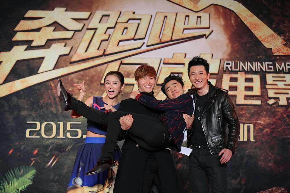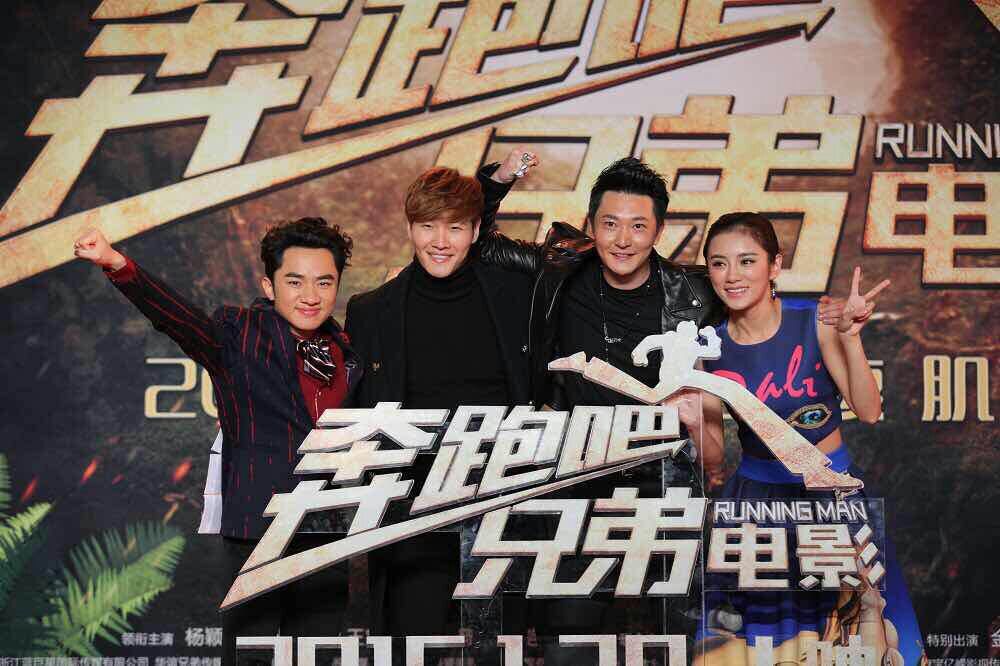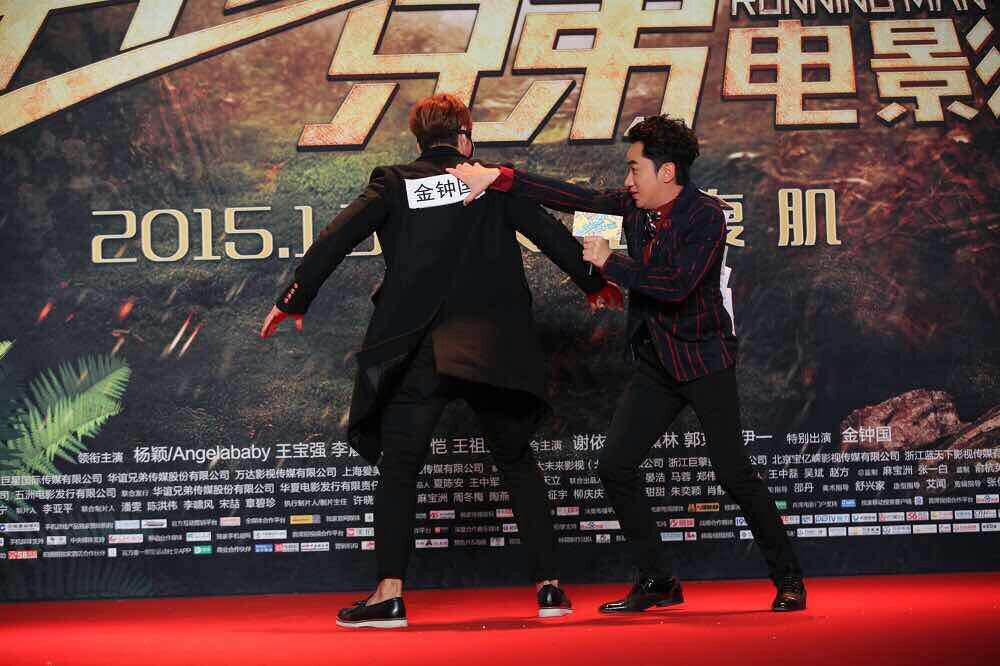 大電影“奔跑吧,兄弟”宣傳活動現場,金鐘國和王祖藍。(北京一路領先汽車租賃公司)圖